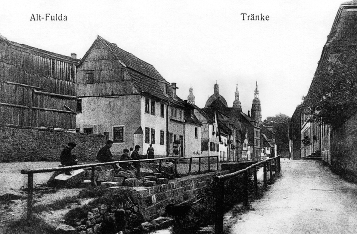 Die Gesamtanlage umfaßt den historisch gewachsenen westlichen Vorstadtbereich Fuldas, der bis ins 19. Jh. hinein in die eigenständigen Gemeindebezirke "Hinter der Burg" und "Untergemeinde" gegliedert war. Bereits im Mittelalter hatten sich hier Bauern und Handwerker angesiedelt, die als Lehensleute für Konvent und Fürstabt arbeiteten. Während sich die hauptsächlich dem Abt unterstellte Untergemeinde entlang der Tränke (Waides) gebildet hatte, erfaßte der dem Konvent zugeordnete Bezirk "Hinter der Burg" die Straßenzüge Langebrückenstraße und Kronhofstraße sowie den heutigen Bereich Hinterburg, von dem man annimmt, daß sich hier in der Frühzeit des Klosters eine Burg- bzw. Wehranlage zur Sicherung eines Tores (Stephanstor, heute Schultor) befand. Diese war wohl besonders deshalb notwendig, da die westliche Einfallstraße von der 885 errichteten Fulda-Brücke (Lange Brücke) her genau auf das Kloster zuführte.