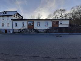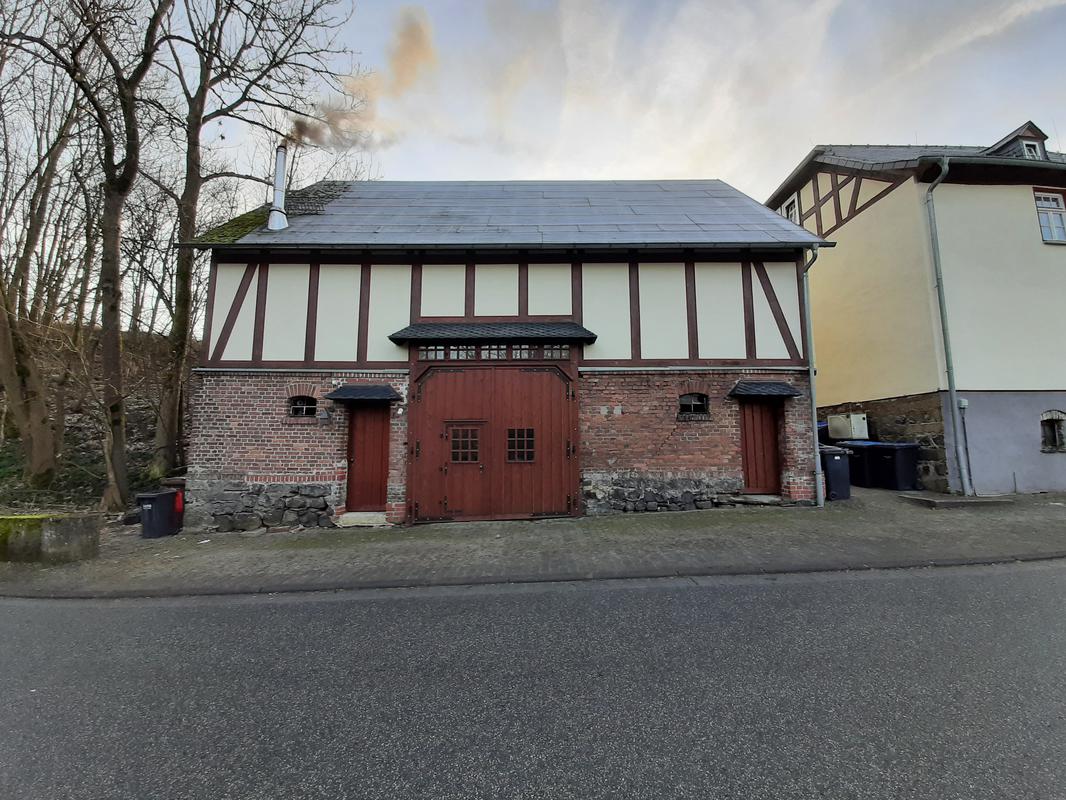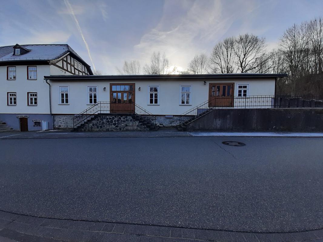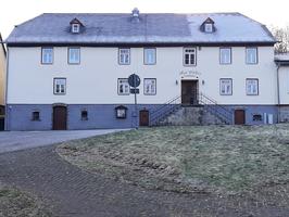 Sachgesamtheit, bestehend aus dem eigentlichen Gasthof, dem angebauten Saalbau und der nordöstlich gelegenen Scheune. Der langgestreckte, zweigeschossige Gasthof von 1812 wurde auf hohem Kellersockel in der für diese Gegend seltenen Pisétechnik mit bis zu 70 cm starken Wänden aus gestampftem Lehm gebaut, während die Giebel des Krüppelwalmdaches in Fachwerk errichtet wurden. Der anschließende Saalbau wurde rund 100 Jahre später, Anfang des 20 Jahrhunderts, erbaut und stellt mit seinem offenen, auf Sicht konzipierten Sprengwerk ein seltenes Beispiel dieser Baugattung dar. Die Scheune mit einem Sockelgeschoss aus Backstein bzw. Bruchstein und mit Fachwerkobergeschoss stammt aus der Zeit um 1900. Kulturdenkmal aus geschichtlichen Gründen