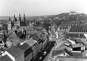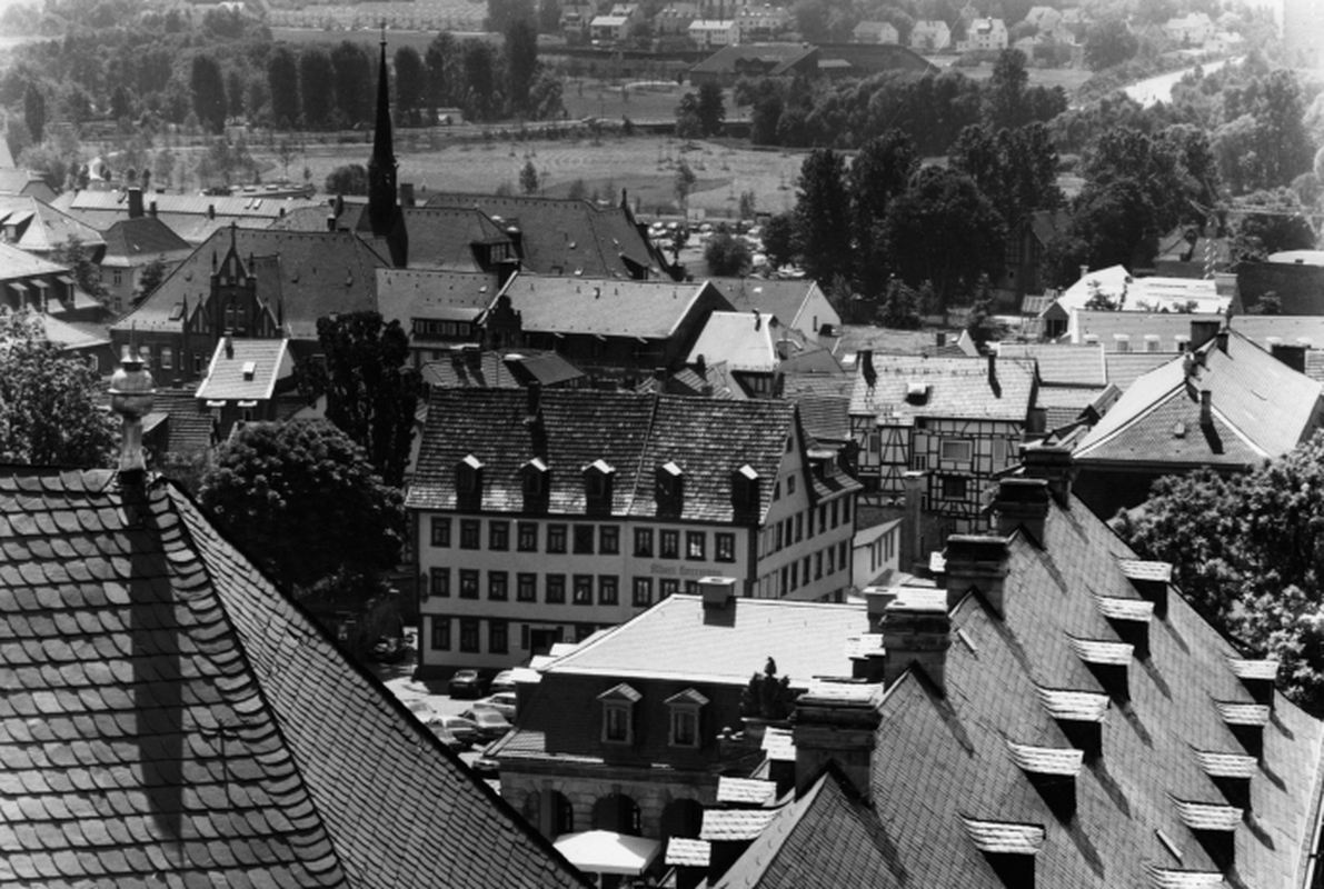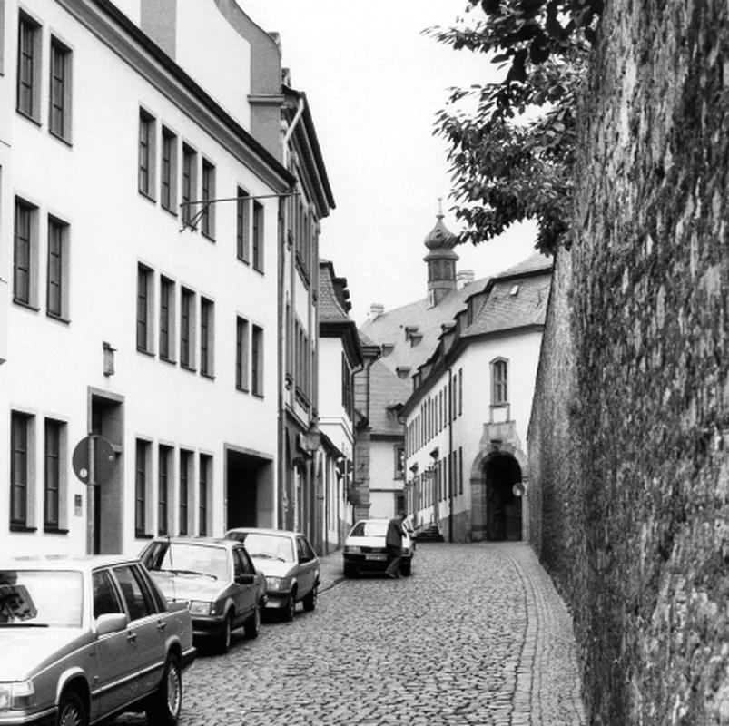 Das Viertel der Juden lag im Zentrum der Stadt, im Bereich des heutigen Zitronemannsgäßchens und der Straße Am Stockhaus (früher auch Obere Judengasse genannt). Im herrschaftlichen Besitz verblieb wohl zunächst noch das weite Gebiet im Nordosten der Stadt, auf dem die Abtsburg, das Franziskanerkloster (ab 1571 den Jesuiten überlassen) und vermutlich auch das steinerne Haus des Stadtvogtes (später Jesuitenkolleg) errichtet wurden. Offensichtlich stand hier noch im 17. Jahrhundert soviel freies Gelände zur Verfügung, dass es vom Fürstabt den Benediktinerinnen zum Bau ihrer weiträumigen Klosteranlage gestiftet werden konnte.