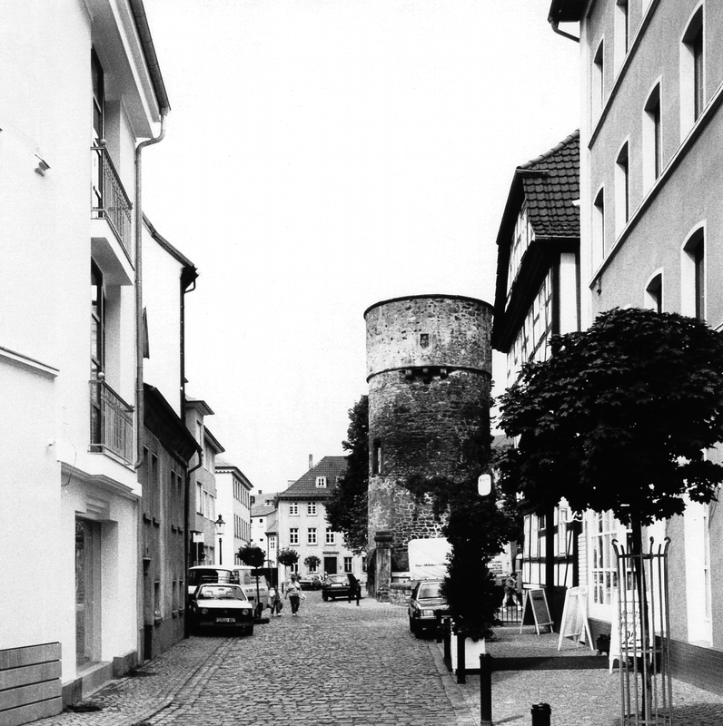 Vier Tore bildeten den Zugang zur Stadt: Für die die Stadt diagonal durchquerende Hauptstrecke von Frankfurt war das Kohlhäuser Tor das südwestliche Entree und das noch heute erhaltene Heertor der nordöstliche Ausgang. Im Süden und Südosten erschlossen das Florentor und das Peterstor, dessen einer Sicherungsturm in ruinösem Zustand noch erhalten ist, das besiedelte Gebiet. Einen Zugang zum Kloster bildete neben dem alten Paulustor das Frauentörlein, dessen Sicherung der noch heute stehende Hexenturm war.