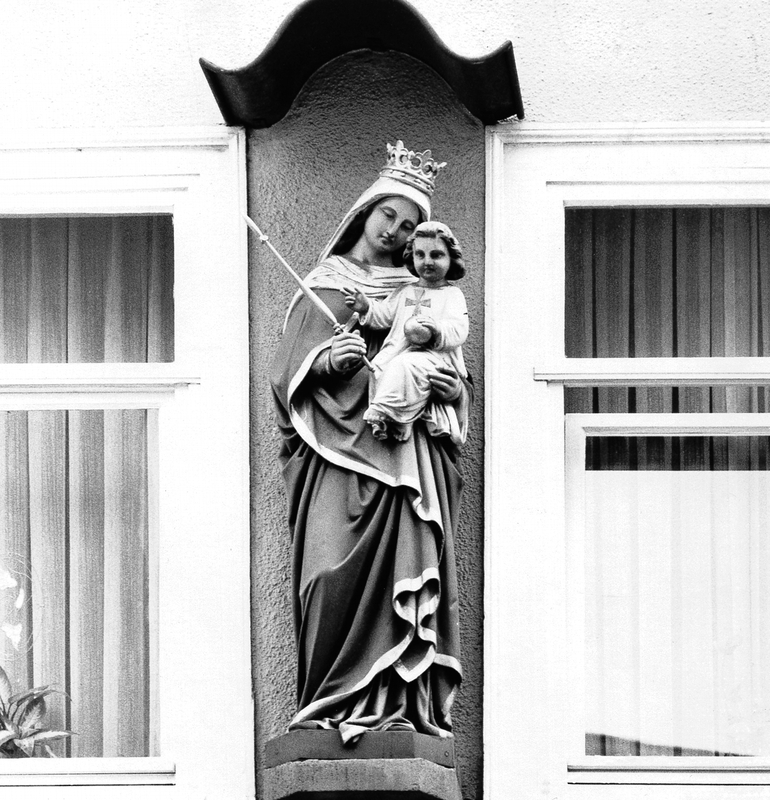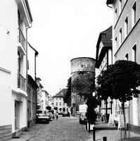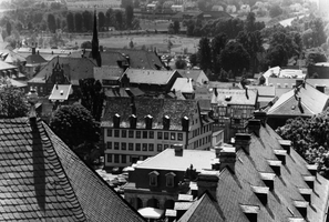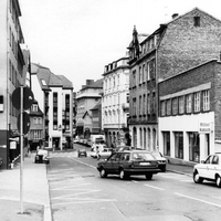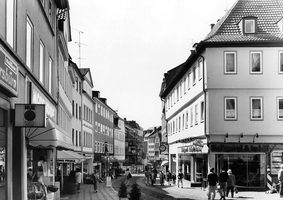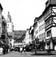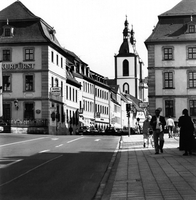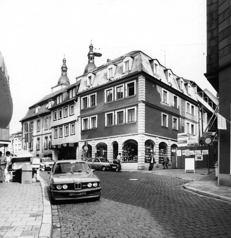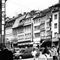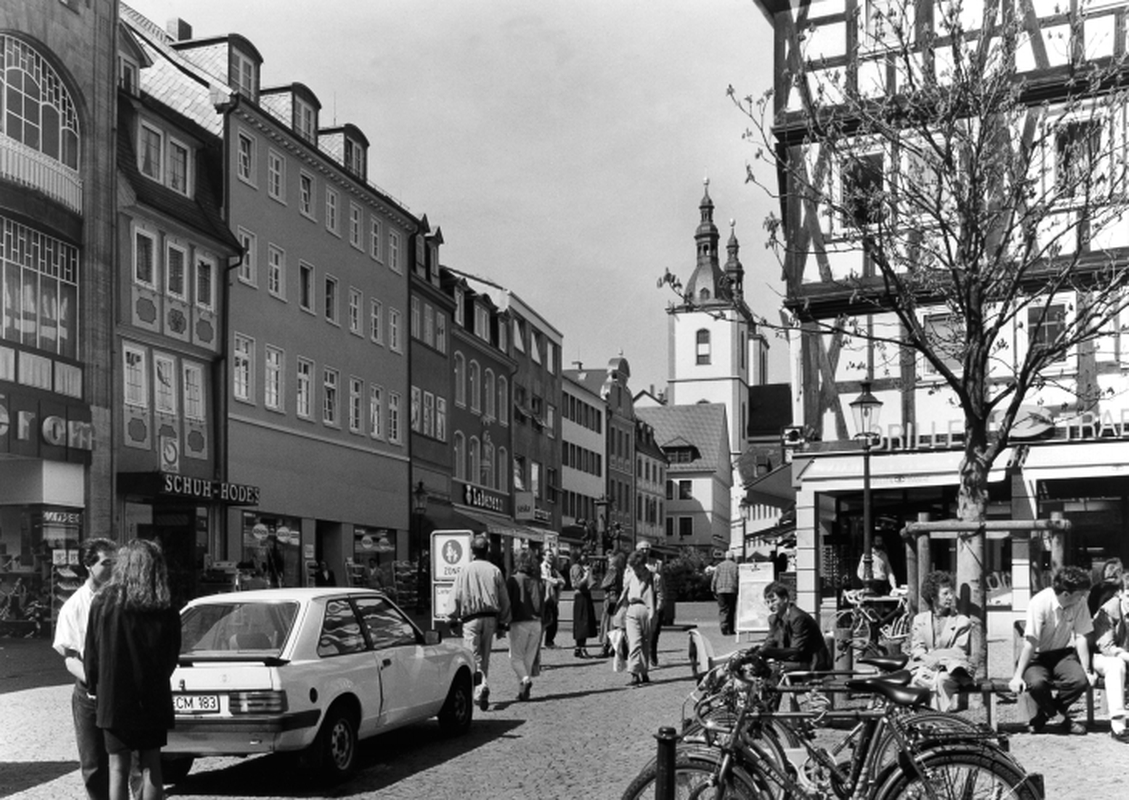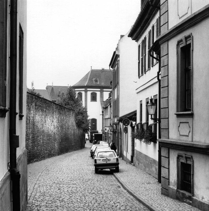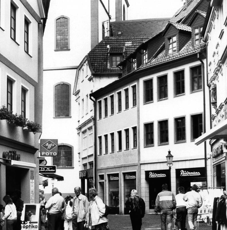 In den 1960er und 1970er Jahren entstanden insbesondere westlich und östlich der Stadtkirche zeitgemäße Großbauten, beispielsweise das Fernmeldeamt an Stelle des Kaiserlichen Postamtes (Unterm Heilig Kreuz 3-5) und die beiden Kaufhausbauten auf dem Gelände des ehemaligen Jesuitenviertels (Borgiasplatz 1).