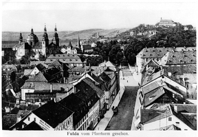 Die Entstehung der Stadt Fulda ist in unmittelbarem Zusammenhang mit dem 744 gegründeten Eigenkloster des Bonifatius zu sehen. Eine Folge dieser rasch berühmt gewordenen Abtei war nämlich die Ansiedlung von Bauern und Handwerkern im Nahbereich des Klosters, zum einen im Nordwesten entlang der heutigen Langebrückenstraße und im Bereich Hinterburg, zum anderen im Südosten auf dem Gelände vor der Stiftskirche. Bereits im Jahre 852 ist von einem Dorf (Villa Fuldensis) die Rede, wobei allerdings nicht deutlich wird, auf welche Niederlassung sich diese Benennung bezieht; vielleicht auf beide zusammen. Während sich die nordwestliche Siedlung aufgrund ihrer ungünstigen topographischen Situation nur begrenzt entwickeln konnte und immer in direkter Abhängigkeit vom Kloster verblieb (die Bauern und Handwerker galten als Hintersassen, Klosterhörige), entstand auf dem südöstlichen, erhöht liegenden Kalkplateau entlang der neuen, verkehrsreichen Fernverbindung von Frankfurt nach Mitteldeutschland der Marktflecken Fulda. Die Einwohnerschaft setzte sich aus Bauern, Handwerkern und vor allem aus Kaufleuten zusammen, für die der Fulda als Raststelle nutzende Handels- und Reiseverkehr Grundlage für die Sicherung des Lebensunterhaltes war. Außerdem wirkten die mit dem Kloster verbundene Königspfalz und die häufigen Herrscherbesuche belebend auf Handel und Verkehr. Bereits zu Beginn des 11. Jahrhunderts muss die südöstliche Siedlung recht umfangreich gewesen sein, 1019 wird ihr von Kaiser Heinrich II. das Münz-, Zoll- und Marktrecht verliehen. Entscheidend für das Überleben des Ortes war jedoch das von Friedrich I. Barbarossa dem Abt Markward (1150-65) gewährte Privileg, eine Stadtmauer errichten zu dürfen. Spätestens zu diesem Zeitpunkt, also um 1160, kann von Fulda als Stadt gesprochen werden, allerdings ist darauf zu verweisen, dass bereits 1134 in einer Urkunde der Begriff "urbs" gebraucht wird.