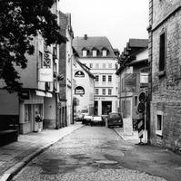 Innerhalb der Mauer gliederte sich die Stadt nach einer Grundstruktur, die noch heute mühelos nachvollzogen werden kann. Prägend für das Stadtbild war die Anlage von drei mit Brunnen versehenen Marktplätzen, die sich von Norden nach Süden folgendermaßen staffelten: unmittelbar an der Klostermauer und vor der im frühen 14. Jahrhundert errichteten Abtsburg der sogenannte Dienstagsmarkt (heute Bonifatiusplatz, zeitweilig auch Schlossplatz), dann im Zentrum vor der Pfarrkirche der Markt Unterm Heilig Kreuz, schließlich der sogenannte Sonnabendsmarkt (heute Buttermarkt). Die Hauptverkehrsachsen, die teilweise diese Plätze untereinander und mit den Toren verbanden, waren vier weitgehend parallel in Nord-Süd-Richtung verlaufende Straßenzüge: im Osten der Hitzeplan (heute die Achse Universitätsstraße/Schulstraße), dann die Steingasse (heute Steinweg/Nonnengasse), etwas westlicher die Schmiedegasse (heute Friedrichstraße), die sich in die Töpfergasse (heute Marktstraße) und Untere Judengasse (heute Mittelstraße) verzweigte, schließlich die Straße am Wollwebersgraben (heute Kanalstraße). Die Querverbindungen dieser langgezogenen Hauptachsen bestanden meist aus kurzen und schmalen Gassen (beispielsweise Habsburger Gasse, Rittergasse, Severiberg, Luckenberg). Darüber hinaus gab es aus Gründen des Brandschutzes zahlreiche Feuergassen, die jedoch nicht für den Verkehr freigegeben waren. Einige dieser namenlosen Gässchen sind heute noch vorhanden. Die bedeutendste Querstraße war jedoch die im Süden verlaufende Krämergasse (heute Karlstraße) zwischen Kohlhäuser Tor und Buttermarkt, die wohl von einem großen Teil des Fernverkehrs frequentiert wurde.