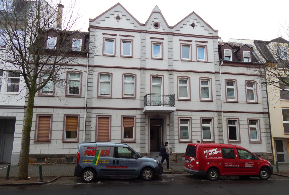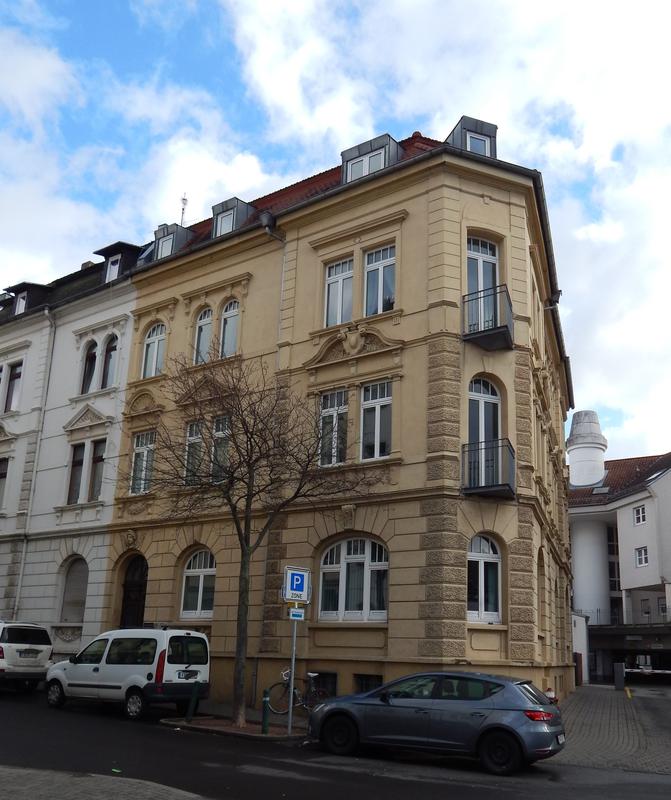 Am südlichen Ende der Lindenstraße beginnt die Rhönstraße, die hier noch die einheitliche Bebauung aus den Jahren 1900 bis 1914 zeigt. So die historistischen Fassaden der Wohnhäuser Rhönstraße 2 und 4 von 1902 bzw. 1906. Ähnliche Stilelemente finden sich auch an den Nachbarbauten, hier jedoch in reduzierter Form, da dieser Bereich im Zweiten Weltkrieg von starken Zerstörungen betroffen war. Ältestes Gebäude in diesem Teil der Rhönstraße ist Nr. 9, das bereits 1899 errichtet wurde. Es zeigt über einem Backsteinerdgeschoss eine zeittypische Backsteingliederung in hellen Putzflächen.