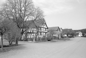 Abzweigend von der übergeordneten Haselsteiner Straße (L 3258) führt die schmale Bachstraße leicht abwärts in den alten Ortskern von Mittelaschenbach. Das Wohnhaus Bachstr. 1 und der gegenüberliegende Baumbestand bilden hierzu eine torähnliche Abgrenzung. Nach einigen Metern öffnet sich die Straße zu einem länglich ausgeweiteten platzartigen Raum. Auf der linken Seite folgen die gut erhaltenen Fachwerkhöfe Bachstr. 5, 7, 9 und 11, allesamt große, u - förmig geöffnete Dreiseithöfe mit Auszugshäusern. Vor den Anwesen Bachstr. 5, 7 und 9 haben sich zudem die alten Vorgärten, z. T. mit eiserner Umfriedung erhalten, ein im Kreisgebiet kaum mehr anzutreffender Bestand. Am hinteren Ende des langgestreckten Straßenraumes bilden die Höfe Bachstr. 11 und 10 wiederum eine torartige Situation, die den alten Ortskern abschließt. Etwas rechts außerhalb der Mitte fließt der offene Lauf des Aschenbachs durch die ganze Längsausdehnung der Bachstraße, ein in dieser Form nach den zahlreichen Regulierungsmaßnahmen der 1960er und 1970er Jahre ausgesprochen seltenes Beispiel seiner Art. Die rechte Bebauungsseite der Bachstraße hat sich nicht ganz so lückenlos erhalten wie die linke. Dennoch wird sie eingeklammert von den großen Höfen Bachstr. 10 und Reinhardser Str. 2. Lediglich der dazwischen liegende Hof Bachstr. 8 weist ein modernes Wohnhaus auf; das Fachwerk - Auszugshaus des Anwesens hat jedoch überdauert. Das in dieser Weise im Kreisgebiet wohl einzigartige historische Ensemble aus Fachwerkhöfen mit Wohn- und Auszugshäusern, Vorgärten und offenem Bachlauf ist aus orts- und siedlungsgeschichtlichen, architekturhistorischen und kulturanthropologischen Gründen erhaltenswert.