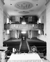 Nach dem Eintritt durch das Portal gelangt man in einen Vorraum, in dem rechts und links die Spindeltreppen zur Empore führen. An zwei Türstürzen befindet sich die Jahreszahl 1750. Der eigentliche Innenraum präsentiert sich als Saal mit Spiegeldecke und profiliertem Kehlgesims. Der Altarraum ist durch einen runden Chorbogen auf profilierten Kämpfern vom Schiff getrennt. Der große Hauptaltar aus Stuckmarmor stammt ursprünglich aus der im Jahre 1770 abgerissenen Fuldaer Stadtpfarrkirche. Zwischen den kräftigen, blauschwarz marmorierten korinthischen Säulen in leichter Schrägstellung stehen unter Vorhängen die Assistenzfiguren des Erzengel Michael und ein Schutzengel mit Kind. In der Mitte über dem großen Tabernakelaufbau mit dem Lamm Gottes und Vasen befindet sich ein barocker Kruzifixus. Auf dem waagerechten Gebälk sitzen jubilierende Engel und ein Strahlenauge Gottes. Zur weiteren Ausstattung zählen die holzgeschnitzten barocken Seitenaltäre sowie einige Holzplastiken an den Chor- bzw. Schiffsseitenwänden, die z. T. aus dem 19. Jahrhundert stammen. Die rückwärtige Orgelempore ruht auf vier Holzsäulen, das Orgelprospekt wurde erneuert. Die katholische Kirche St. Laurentius mit ihrer reichen Ausstattung ist ein gutes Beispiel für den sogenannten Fuldaer Barock.