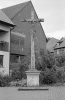 Reich gestaltetes steinernes Kruzifix, bezeichnet 1865. Das Postament zeigt auf der Vorderseite eine Kartusche mit Inschrift und einem kleinen Vesperbild in Flachrelief. Als Stifter werden auf der Rückseite Joseph Vogt von Großenbach un M. Franziska geb. Mans von Mittelaschenbach genannt. Am Kreuzstamm sind unten der hl. Rochus mit Hund und darüber die Leidenswerkzeuge ebenfalls in Flachrelief dargestellt. Der Querarm des Kreuzes ist durch lineare Ornamente gestaltet. Die schlanke Figur Christi besteht, anders als das Kreuz, aus rotem Sandstein und ist eventuell jünger.