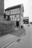 Kleines giebelständiges Fachwerkhäuschen auf straßenseitig geschosshohem Sockel. Die Eingangsseite des zweistöckigen Gebäudes zeigt eine Fachwerkkonstruktion, die auf eine Entstehung des Hauses in der 2. Hälfte des 18. Jahrhunderts deutet. Mannfiguren mit weit ausladenden, den benachbarten Wandständer übergreifenden Fußstreben steifen die Eckständer aus. Der Bundständer des zweizonigen Baus wird durch Fischgrät - Fachwerk abgestützt. Das aufgrund seiner geringen Größe als ehemaliges Lohnarbeiterhäuschen mit Kleintierstall im Sockel anzusprechende Gebäude ist als eines der wenigen erhaltenen Beispiele seiner Art aus orts- und sozialgeschichtlichen Gründen erhaltenswert.