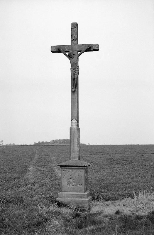 Gegenüber der Einmündung der nach Großenbach führenden Straße an der B 84 aufgestelltes Steinkruzifix, bezeichnet 1865. Auf den Flanken des abgestuften Postaments sind in rundbogigen Zierfeldern Flachreliefs der vier Evangelisten mit jeweiliger Namensunterschrift gearbeitet. An der Vorderseite des Kreuzstammes befindet sich noch ein kleines, schwer deutbares Relief unter einer Giebelverdachung. Die Figur des Gekreuzigten ist im Verhältnis zum Kreuz maßstäblich etwas zu klein geraten.