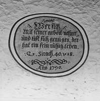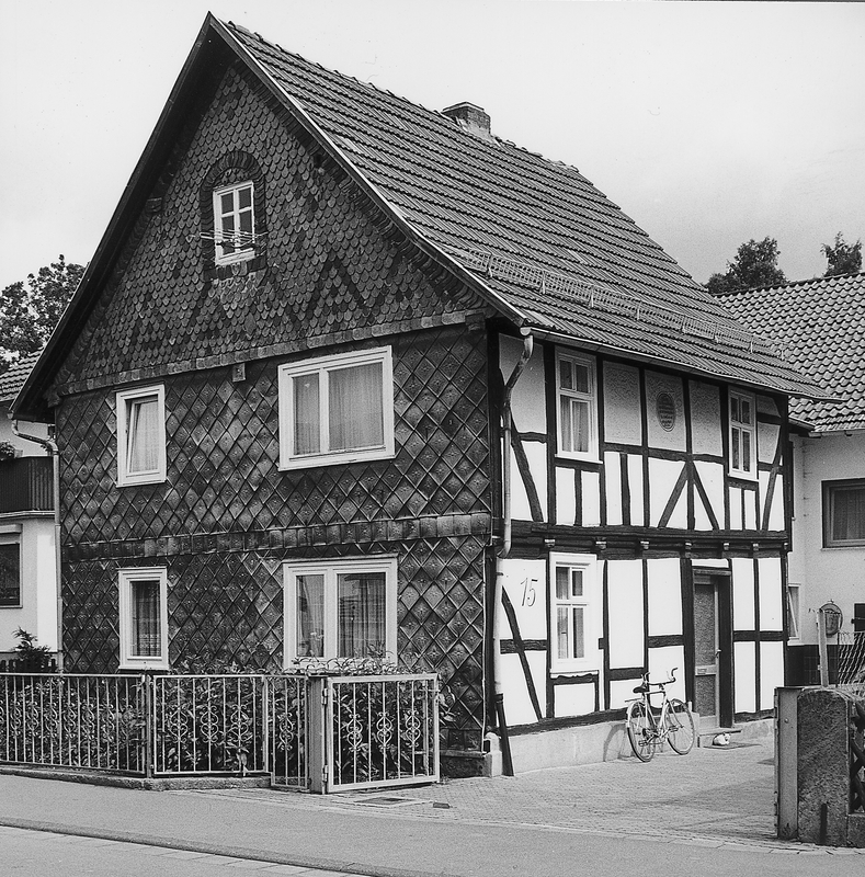 Giebelständiges Wohnhaus in zwei Geschossen über hohem, massivem Sockel, inschriftlich ins Jahr 1790 datiert. An der einsichtigen Traufseite konstruktives Fachwerkraster mit Mannfiguren und 3/4-Streben an den Eckständern.
