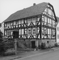 1814 datiertes Wohnhaus des inschriftlich erwähnten Weinhändlers Conrad Brill. Das vollständig unterkellerte Haus erhebt sich über einem mächtigen Sockel in zwei Geschossen mit repräsentativem Fachwerkgefüge. Neben den traufseitig ausgebildeten Schauseiten mit reichem Dekor dient die giebelseitige Fassade als ortsbildprägender Blickpunkt von der Albunger Straße. Die erhaltenen Torpfosten stammen aus der Erbauungszeit des Wohnhauses.