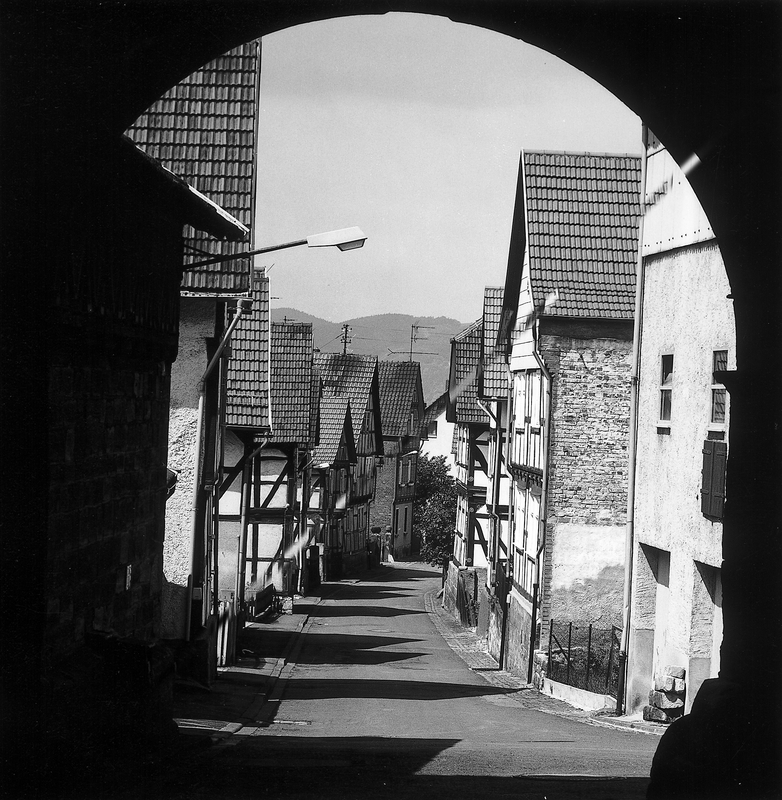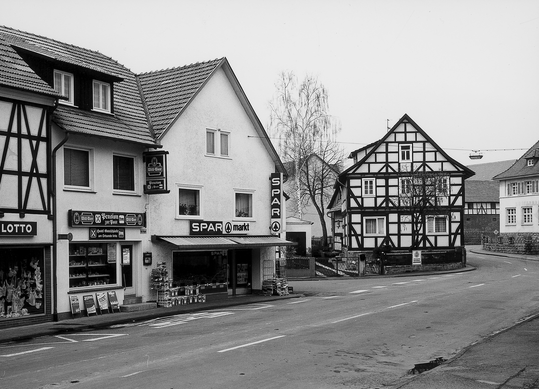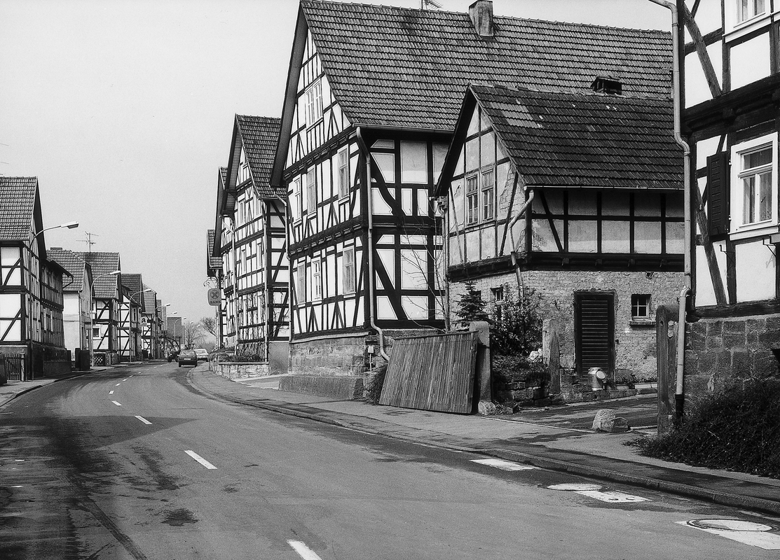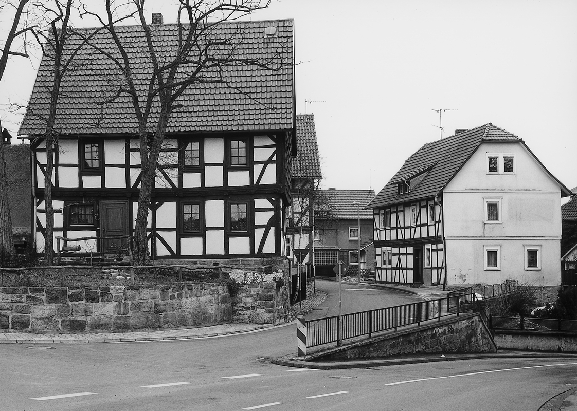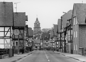 Einen anderen Akzent setzt die den ursprünglichen Ortskern markierende Baugruppe aus Schloss und Kirche im Mittelpunkt der Stadt. Um dieses ehemals grundherrschaftliche Anwesen gruppierte sich die frühe Besiedlung des Ortes. In der Borngasse, der Schul- und Gartenstraße erstreckten sich die Anwesen der Kleinbauern mit bescheidenen Wohnhäusern und ebensolchen Wirtschaftsgebäuden. Diese Gebäude dienten zum Teil lediglich als Nebenerwerbshöfe.