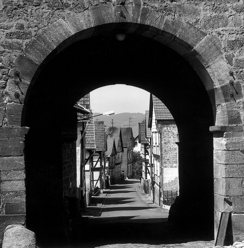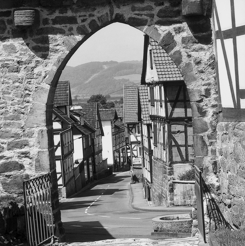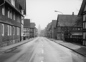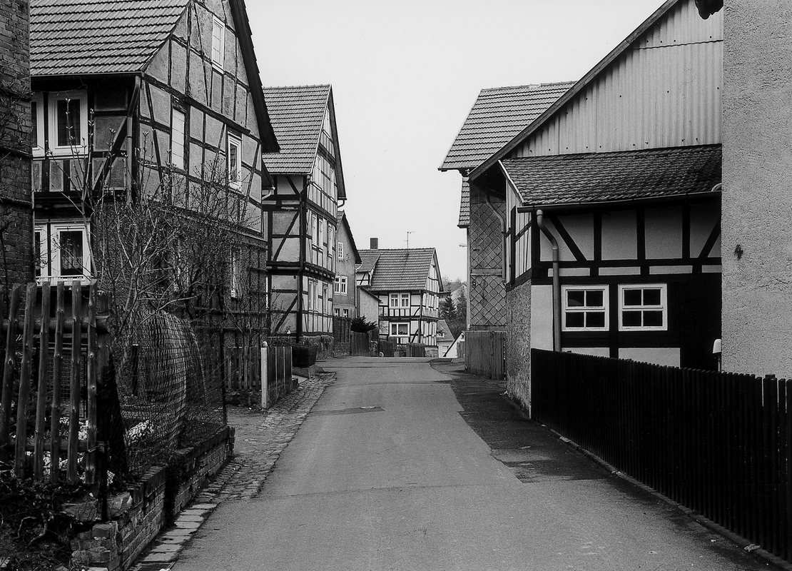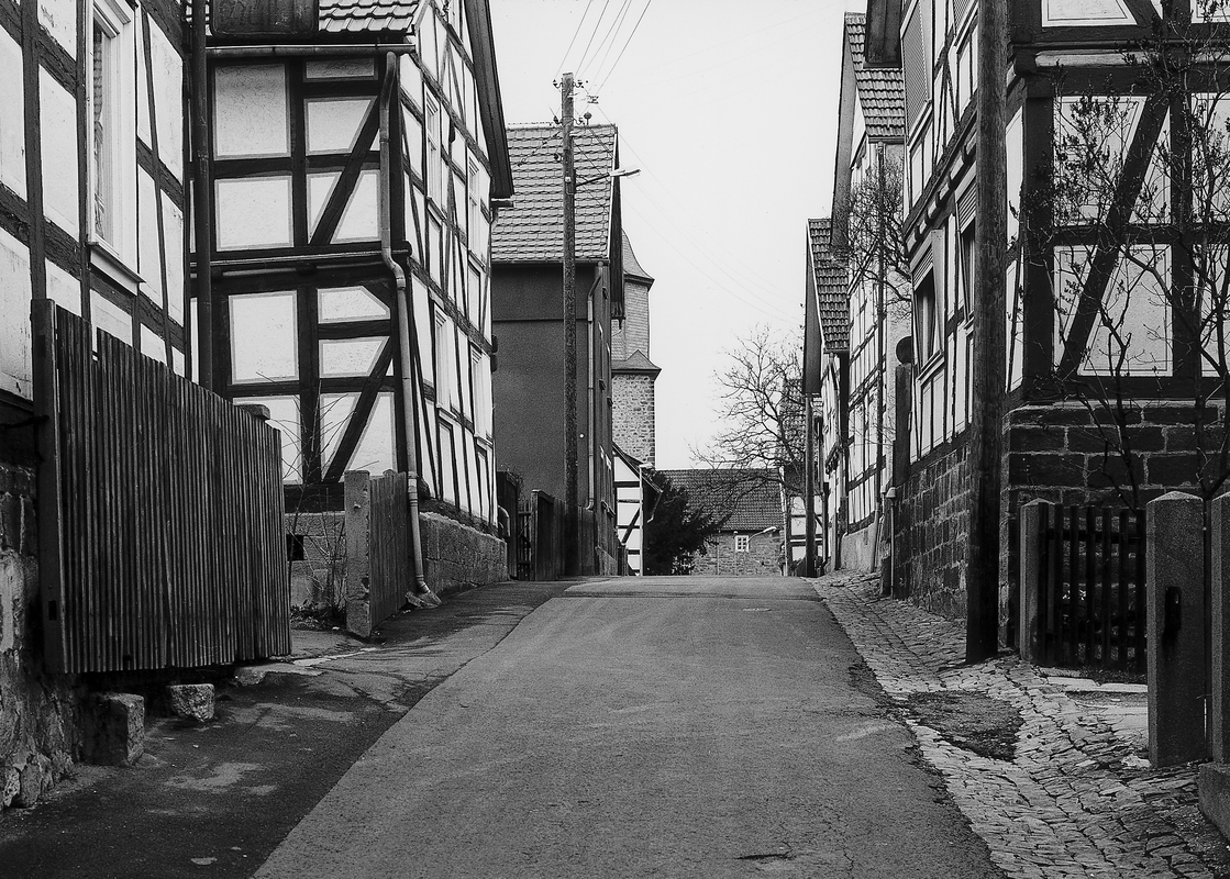 Einen anderen Akzent setzt die den ursprünglichen Ortskern markierende Baugruppe aus Schloss und Kirche im Mittelpunkt der Stadt. Um dieses ehemals grundherrschaftliche Anwesen gruppierte sich die frühe Besiedlung des Ortes. In der Borngasse, der Schul- und Gartenstraße erstreckten sich die Anwesen der Kleinbauern mit bescheidenen Wohnhäusern und ebensolchen Wirtschaftsgebäuden. Diese Gebäude dienten zum Teil lediglich als Nebenerwerbshöfe.