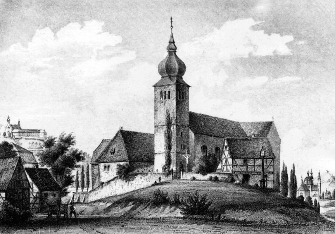 Im 12.Jh. erhielt die Kirche den bestehenden dreigeschossigen Westturm mit Schallarkaden und einem spitzen Helm. Die Johanneskapelle im ersten Turmgeschoß richtete Propst Gerlach 1480 ein. Aus der Zeit um 1500 sind Nachrichten über die Erneuerung von Klausurgebäuden bekannt. Erste Renovierungsmaßnahmen erfolgten unmittelbar nach den Zerstörungen des Dreißigjährigen Krieges hauptsächlich im Chorbereich. Vermutlich verlängerte man nun auch - spätestens bis zum Jahr 1647 - das Kirchenschiff bis zum Turm. Zwischen 1766 und 1768 kam es unter Propst Karl von Fechenbach zu einer tiefgreifenden Modernisierung des ottonischen Baues, wobei u.a. die obere Zone der Langhauswände abgetragen wurde, um größere Fensteröffnungen zu schaffen und ein Holzgewölbe einziehen zu können, das dann stukkiert wurde. Die Wände gliederte man durch flache Pilaster. Als Abschluß dieser Baumaßnahmen wurde dem Turm die geschweifte Zwiebelhaube aufgesetzt.