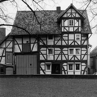 Wohnhaus mit angeschlossener Scheune, um 1800 in unmittelbarer Nachbarschaft zur Kirche erbaut. Da es traufseitig über drei Stockwerken erschlossen wird, repräsentiert das Gebäude einen reichen Wohn-Wirtschaftstrakt der Erbauungszeit mit repräsentativer Fassadengestaltung.