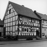 Repräsentatives traufständiges Wohnhaus um 1800 in dem von der dichten Zeilenbebauung geprägten Bereich des Steinweges. An der Schaufassade Mannfiguren mit Hals- und Brustriegeln an Eck- und Bundständern in beiden Geschossen. Besonders ausgeprägt sind die Malerei und der Flachschnitzdekor im Bereich des Geschossüberstandes und an den Eckständern.