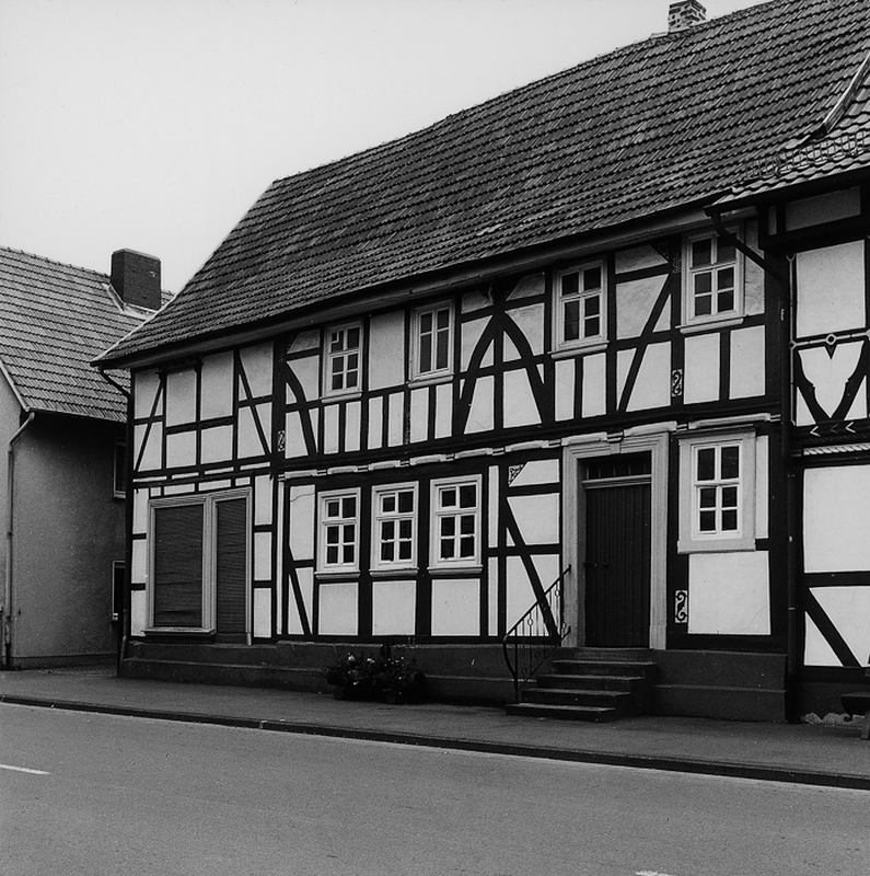 Traufständiges Wohnhaus in zwei Geschossen in lebhaftem, klar gegliedertem Fachwerkverband aus Mannfiguren an den Eck- und Bundständern, im Brüstungsbereich des Obergeschosses Leitermotiv. Datierung um 1780. Als Abschluss der Fachwerkhäuserzeile Steinweg 28-34 ist das Haus Kulturdenkmal aus städtebaulichen und geschichtlichen Aspekten.