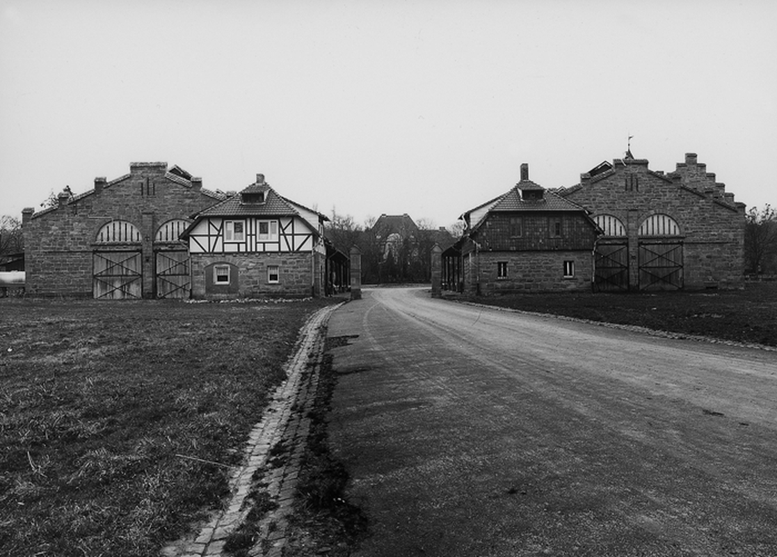 Der heutige Wirtschaftshof, der sich südlich des Abteroder Raines in einer Talsenke erhebt, wird im Wesentlichen durch die Gebäude geprägt, die eine vierseitige Hofanlage ausbilden. Es sind dies die großen Wirtschaftsgebäude (1898-1900), die in Formzitaten aus der Renaissance in Sandstein und Fachwerk errichtet wurden sowie das über einer Treppenanlage aufragende herrschaftliche Wohn- und Verwaltungsgebäude (1912/13) in repräsentativen Formen der Reformarchitektur als Putzbau mit aufwendigen Natursteingliederungen und Dach in Mönch-Nonne-Deckung. Im Innern des Herrenhauses reiche zeitgenössische Gestaltung u.a. Medusenhaupt am Anlaufpfosten des Treppengeländers Karl Hans Bernewitz, einem Meisterschüler von Reinhard Begas. Seitlich des Herrenhauses hat sich ein spätbarockes Fachwerkgebäude erhalten. Die Gartenanlage hinter dem Herrenhaus nach den Plänen von Tettaus bis in die ersten Jahre nach dem Ersten Weltkrieg mit Stützmauern, Gartenhaus und Gewächshäusern unter Einbeziehung bestehender Teiche und eines älteren Eiskellers. Eine von dem bedeutenden Bremer Gartenarchitekten Friedrich Gildemeister (1887-1947) ausgearbeitete Planung wurde nicht realisiert. Im Umfeld der Neuen Villa entstanden einige Kleinarchitekturen nach den Entwürfen von Tettaus, u.a. die Freitreppe zwischen Villa und Wirtschaftshof, 1916 die Brückenanlage an der Nordzufahrt mit als Voluten gestalteten Brüstungsanläufen sowie 1919 ein Ehrenmal für die Gefallenen Gutsarbeiter an der Nordeinfahrt.
