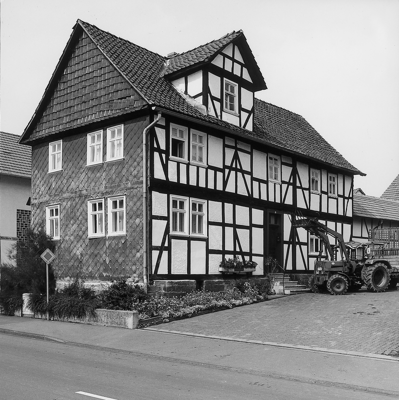 Giebelständiges Wohnhaus einer Hofanlage in zwei Geschossen mit konstruktivem Fachwerkraster aus 3/4-Streben mit Brust- und Sturzriegeln im Obergeschoss. Als erhaltenes kleinbäuerliches Wohnhaus aus dem Beginn des 19. Jhs. ist das Gebäude Kulturdenkmal aus geschichtlichen Gründen.