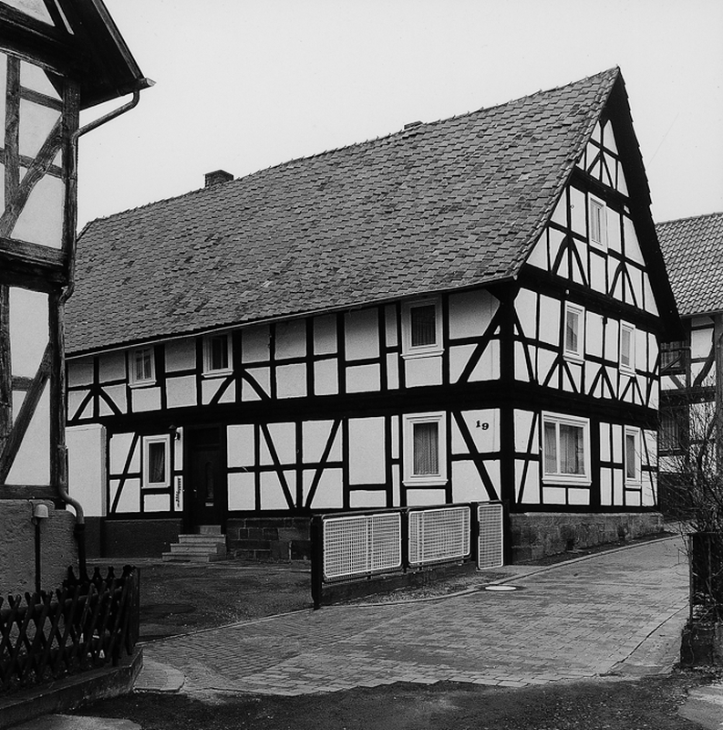 Imposante, dreiseitig umbaute Hofanlage mit einem Wohnhaus, dessen einfacher Fachwerkverband eine Datierung um 1800 zulässt. Gegenüber befindet sich ein wenig älterer, kleinmaßstäblicher Altenteiler mit Mannfiguren, deren Fußstreben leicht abknicken. Die Parzelle wird von einer Scheune in Ständerkonstruktion, wohl zusammen mit dem Wohnhaus erbaut, abgeschlossen.