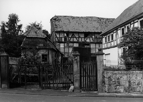 Imposante Hofanlage aus dem letzten Drittel des 18. Jhs. mit stattlichem Wohnhaus und teils noch erhaltenen Wirtschaftsgebäuden. Das zweigeschossige Wohnhaus zeichnet ein umlaufender Geschossüberstand sowie Mannfiguren an den Eckständern mit Hals- und Brustriegeln aus, dem Wohnhaus gegenüber Wirtschaftsgebäude in Massivbauweise. Als Beispiel eines stattlichen Anwesens im Verlauf des Straßenzuges ist das Gebäude aus städtebaulichen und ortsgeschichtlichen Gründen erhaltenswert.