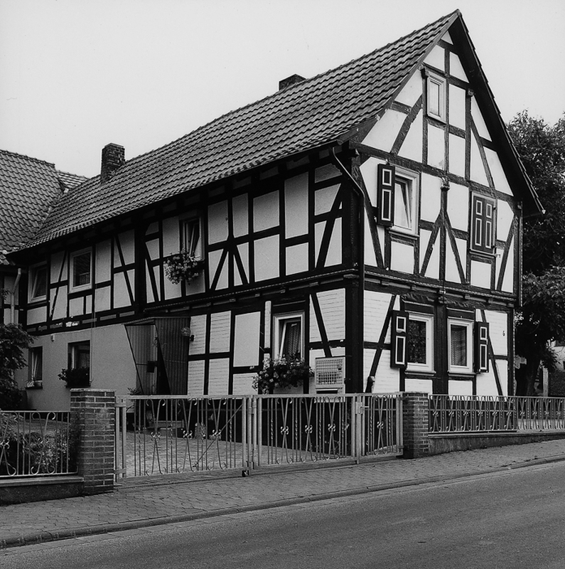 Giebelständiges Wohnhaus in zwei Geschossen über hohem, massivem Sockel, um 1800 entstanden. An den Eckständern Mannfiguren mit Hals- und Brustriegeln. Kulturdenkmal aus geschichtlichen Gründen.
