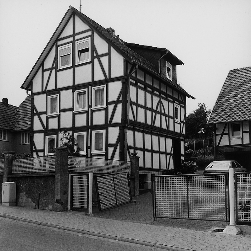 Fachwerkwohnhaus aus der ersten Hälfte des 19. Jhs. in konstruktiver Fachwerkkonfiguration aus 3/4-Streben mit Brustriegeln an Eck- und Bundständern.