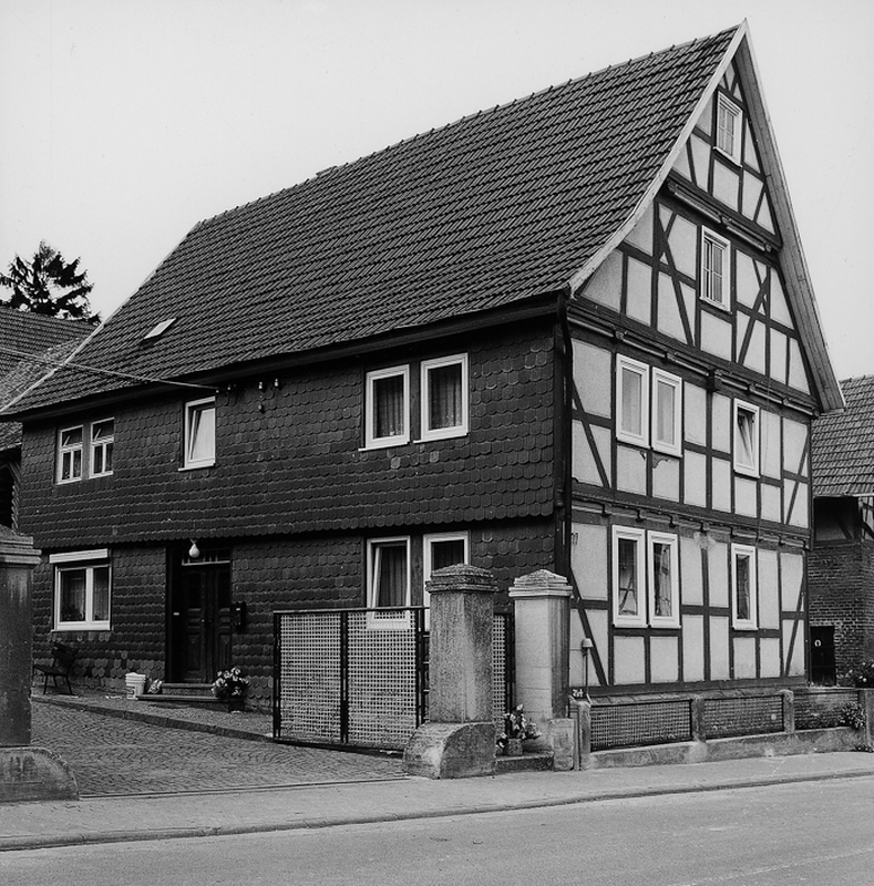 Verschindeltes Wohnhaus mit konstruktivem Fachwerkraster an der einsichtigen Giebelseite aus der ersten Hälfte des 19. Jhs. in zwei Geschossen. An der Schwelle des Geschossüberstandes geteilte Fase. Kulturdenkmal aus geschichtlichen Gründen.