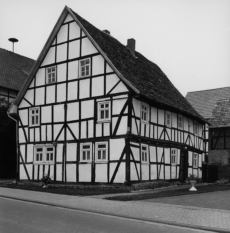 Wohnhaus einer Hofanlage, um 1600 erbaut. An den Eckständern 3/4-Streben mit Brustriegeln, an den Zwischenständern konvergierende Fußstreben. Im Bereich des Geschossüberstandes eingelegte Schiffskehlen mit Rundstab. Als hervorgehobener Teil der lockeren Zeilenbebauung ist das Haus aus städtebaulichen und ortsgeschichtlichen Gründen erhaltenswert.