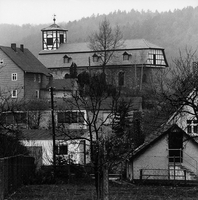 Die evangelische Pfarrkirche des Ortes erhebt sich an exponierter Stelle als langgestreckter Saalbau mit dreiseitigem Schluss und aufgesetztem Mansarddach mit bescheidenem Dachreiter. Im westlichen Teil des Gebäudes ist romanisches Mauerwerk eines ehemaligen Wehrturmes erhalten. Im Lauf der Zeit wurden einige grundlegende Veränderungen des Baukörpers vorgenommen: der Chor wurde in seiner heutigen Form um 1500 errichtet, die hölzerne Tonnendecke 1785 eingezogen (der Wolkenhimmel 1950 aufgetragen).