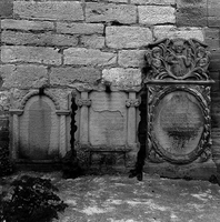 An der Eingangsseite Grabsteine aus dem 18./19. Jh.