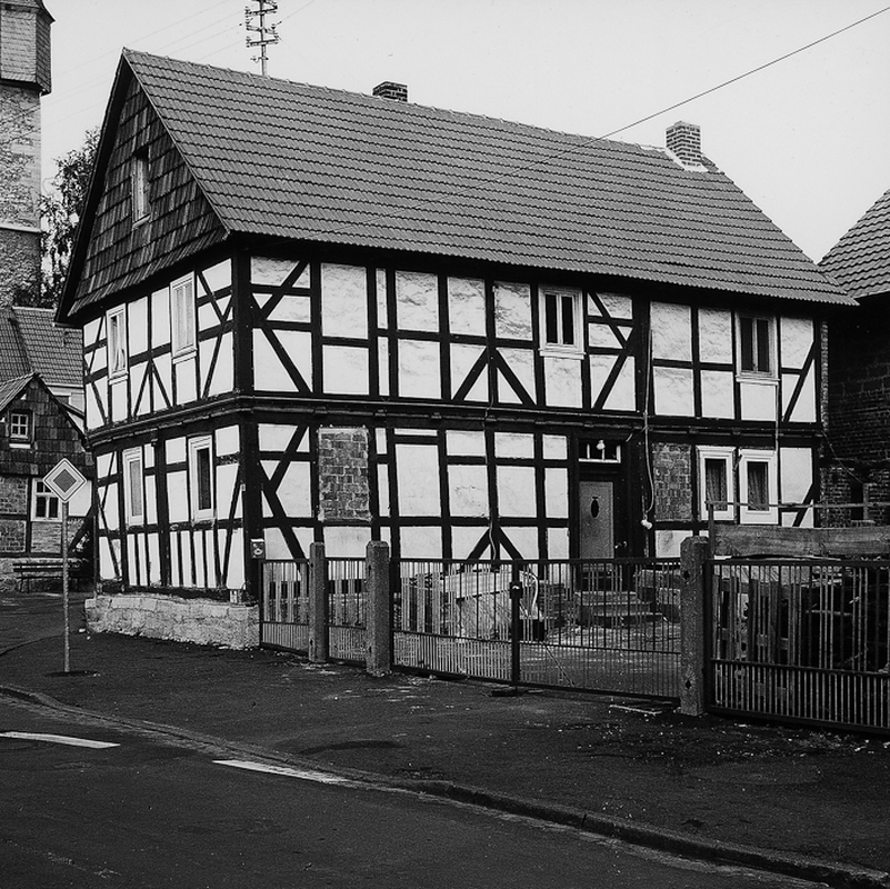 Um 1790 errichtetes Wohnhaus mit K-Streben, Hals- und Brustriegeln an den Eckständern beider Geschosse. An den Zwischenständern konvergierende Fußstreben im Brüstungsbereich. Die Unterkante der Schwelle wird durch eine geteilte Fase profiliert.