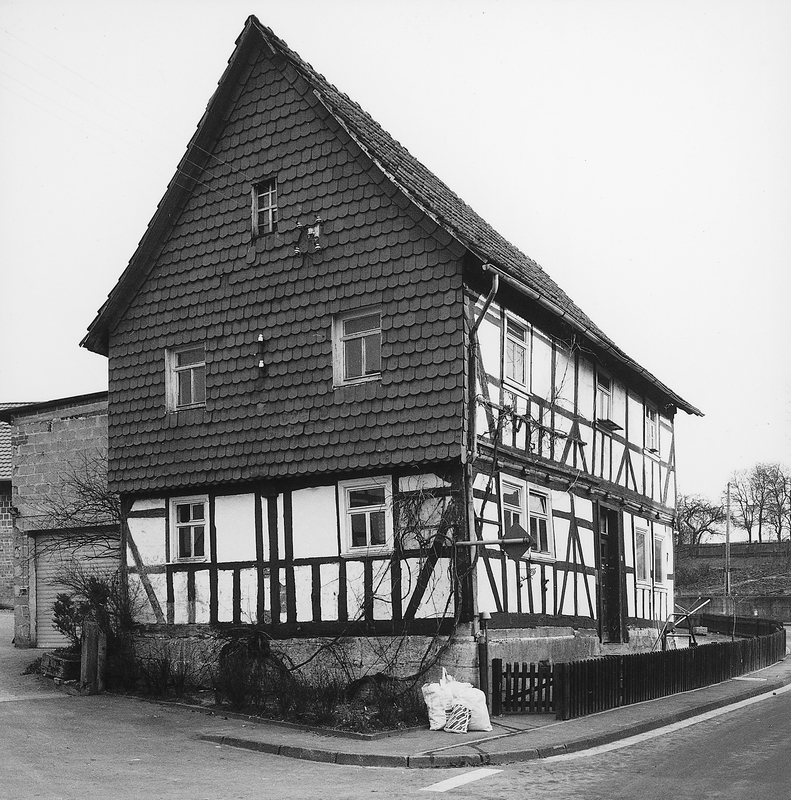 Traufständiges Wohnhaus am nördlichen Rand der historischen Ortsbebauung mit dem das Erscheinungsbild prägenden Leitermotiv in beiden Geschossen. An den Eckständern versteifen Mannfiguren mit Hals- und Brustriegeln den Fachwerkverband, an den Zwischenständern finden sich konvergierende Fußstreben. Das Gebäude ist um 1780 zu datieren.