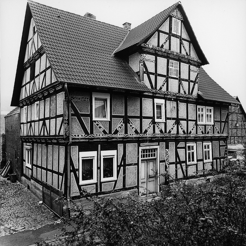 Traufständiges Wohnhaus mit umlaufendem Geschossüberstand und reichem Schmuckfachwerk aus der zweiten Hälfte des 17. Jhs. An der Schwelle Flachschnitzdekor mit figürlichen Motiven, darunter Gespensterdarstellungen, an den Füllhölzern vegetabiler Dekor. An den Eckständern eingelegte Säule mit Schuppenmotiv.