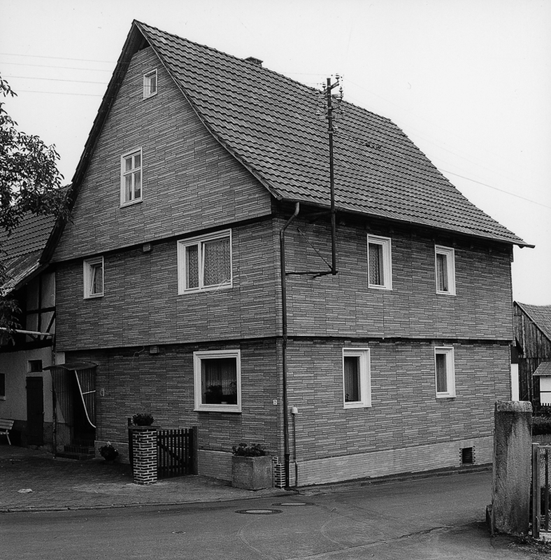 Dieses in der Achse der Steingasse gelegene Haus weist einen umlaufenden Geschossüberstand aus, so dass ein unter der heutigen Verplattung befindliches Fachwerkgefüge anzunehmen ist. Die Erbauungszeit des Gebäudes ist um 1780 anzusiedeln.