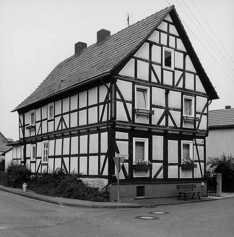 An ortsbildprägender Stelle auf einem Eckgrundstück errichtetes Wohnhaus mit einer inschriftlichen Datierung in das Jahr 1707. Das Fachwerkgefüge besteht aus einer klar gegliederten Konfiguration mit 3/4-Streben an den Eckständern und konvergierenden Fußstreben an den Zwischenständern.