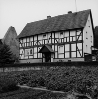 Traufständiges Wohnhaus um 1780 in zwei Geschossen mit markantem Fachwerkgefüge im Obergeschoss, welches besonders durch das Leitermotiv im Brüstungsbereich hervorgehoben wird. Da sich das Gebäude an der erhöhten südlichen Ortsperipherie erhebt, ist es aus städtebaulichen Gründen schützenswert.
