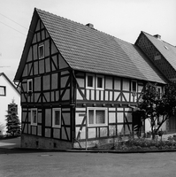Das Wohnhaus erhebt sich an ortsbildprägender Ecklage in zwei Geschossen über einem hohen Sockel und weist ein lebhaftes Fachwerkgefüge auf: an den Eckständern verstärken kräftige Mannfiguren den Fachwerkverband, dazwischen reihen sich die Sprossen eines Leitermotives. Auf Grund der Fachwerkkonfiguration ist eine Datierung um 1780 anzunehmen. (g,s)