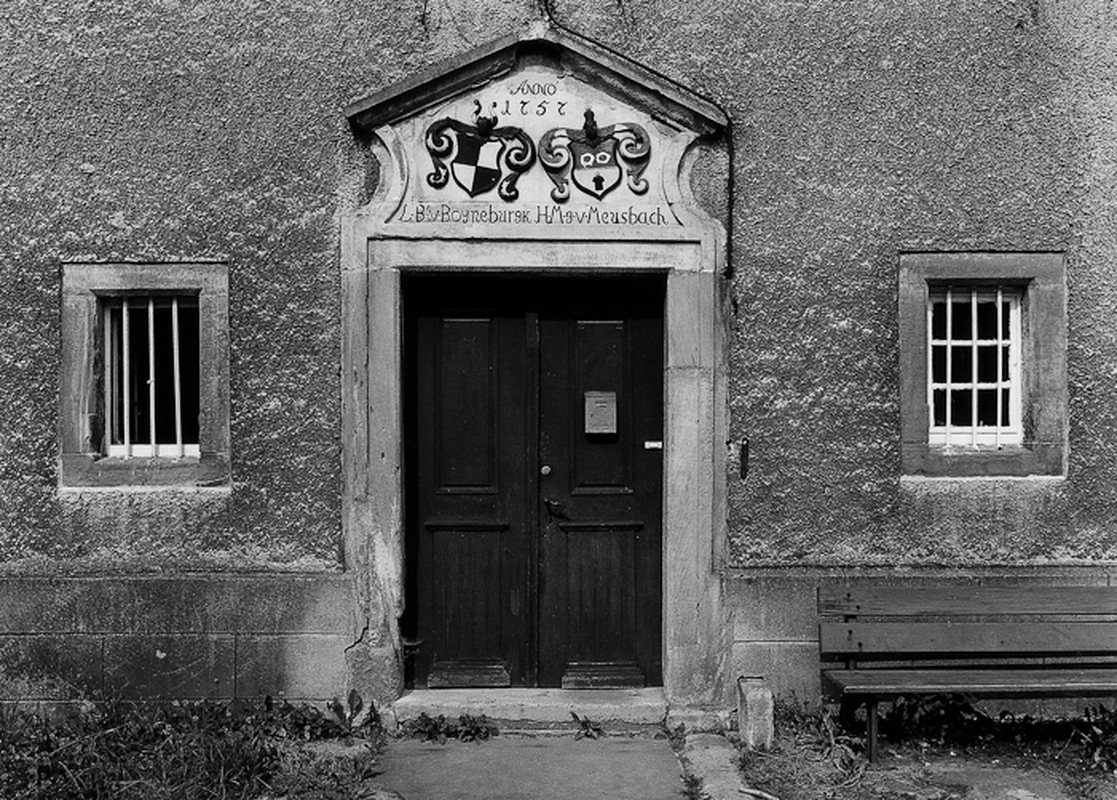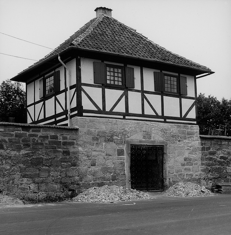 Das als Sachgesamtheit zu bezeichnende ehemalige Schloss der Herren von Boyneburg umfasst das inschriftlich 1757 datierte Herrenhaus, die gegenüberliegenden Wohngebäude älteren Datums und das der Kirche angeschlossene "Alte Schloss". Jenseits des Höhenweges erstreckt sich der ehemalige Nutzgarten des Gutes, den Reste der alten Ummauerung umziehen. Dort erhebt sich gegenüber der Gutseinfahrt ein Wärterhaus über einem mächtigen Sockel; wenig entfernt ein eingeschossiges Fachwerkhaus mit Mansarddach; das Herrenhaus wurde in repräsentativer Größe über einem langgestreckten, rechteckigen Grundriss in zwei Geschossen erbaut. Das Untergeschoss öffnet sich in auffallend kleinteiligen Fenstern, im Obergeschoss befinden sich, nicht auf das Untergeschoss ausgerichtete, größere Fensteröffnungen. Über der Eingangstür ist das Wappen der Bauherren und das Baudatum in einem Blendgiebel angebracht.