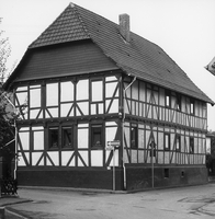 Giebelständiges Wohnhaus in zwei Geschossen über hohem, massivem Sockel in ortsbildprägender Situation auf einem Eckgrundstück. Das Gebäude mit einem repräsentativen Fachwerkgefüge ist inschriftlich in das Jahr 1736 datiert und gehört somit zum älteren Baubestand des Ortes.