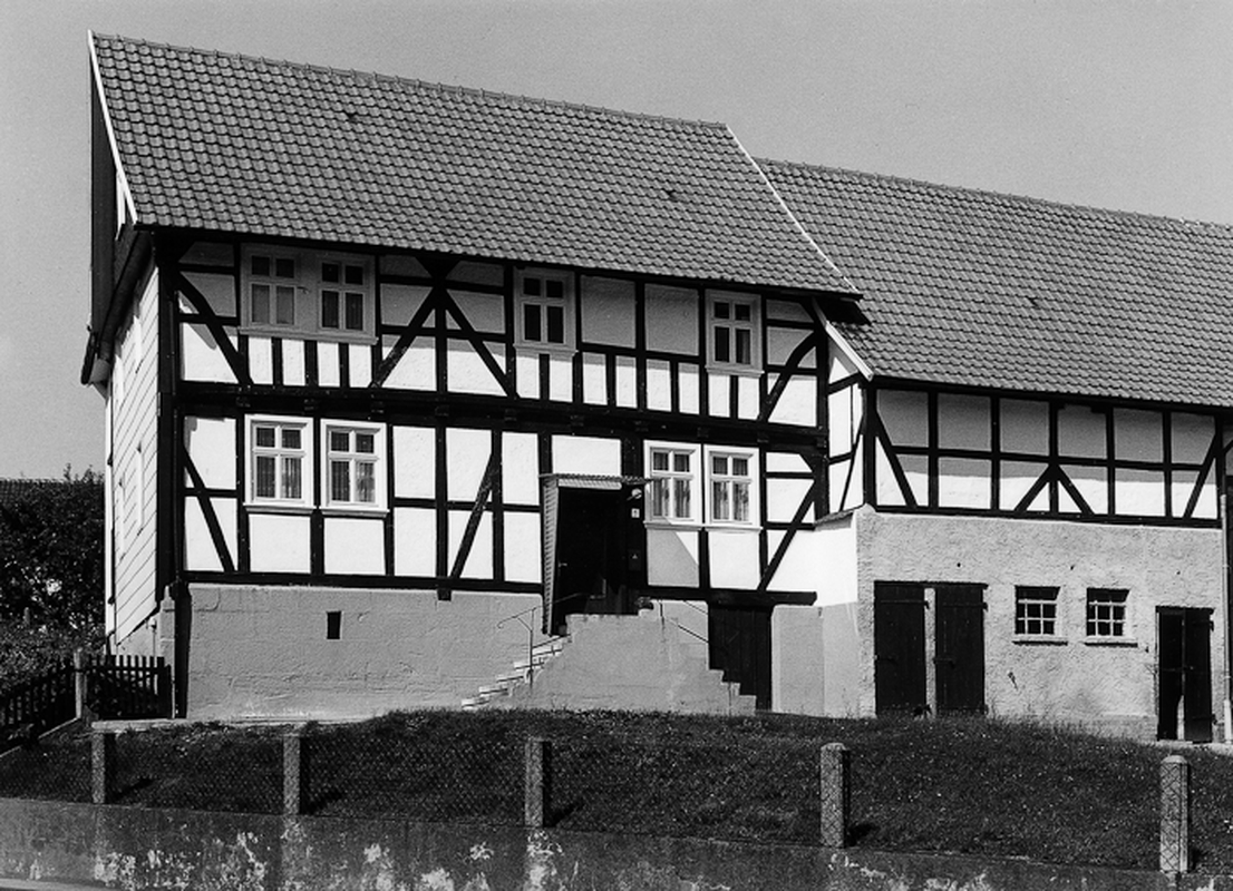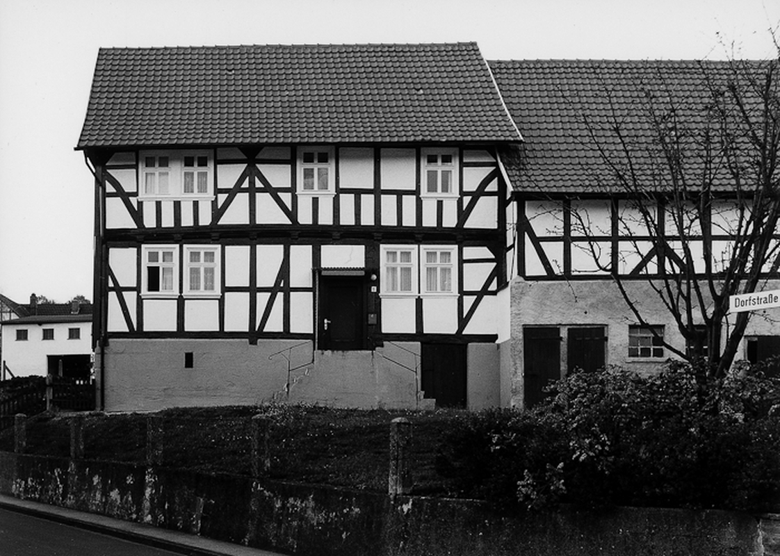 Traufständiges Wohnhaus in zwei Geschossen über hohem, massivem Sockel mit lebhafter Fachwerkkonfiguration: im Obergeschoss an den Eck- und Bundständern Mannfiguren mit zum Teil gebogenen Fußstreben, dazwischen Leitermotiv. Auf Grund dieser Konstruktion ist das Gebäude in die zweite Hälfte des 18. Jhs. zu datieren.