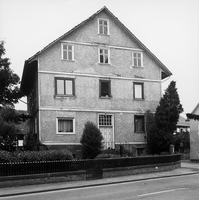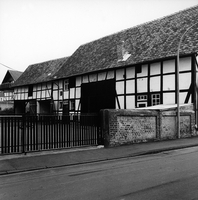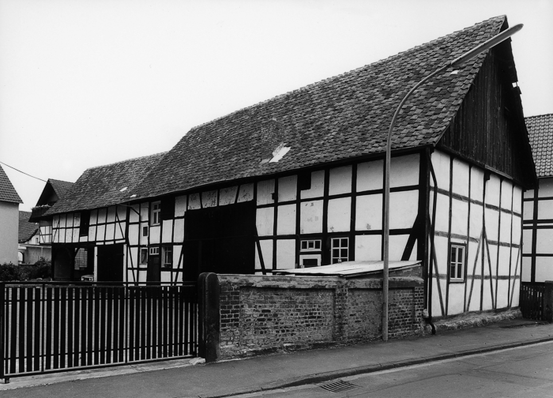 Hofanlage auf dem Eckgrundstück zur Herrengasse, deren Wohnhaus im Jahr 1868 fertig gestellt wurde; die Scheune datiert in das Jahr 1798. Das stattliche verputzte Wohnhaus, dessen Eingang über eine zweiläufige Freitreppe erreichbar ist, erhebt sich in zwei Geschossen über einem hohen Sandsteinsockel. Die Scheune wurde in einer Ständerkonstruktion mit einfachem Fachwerkgefüge errichtet.
