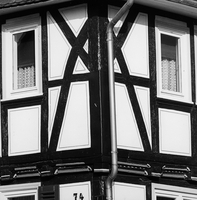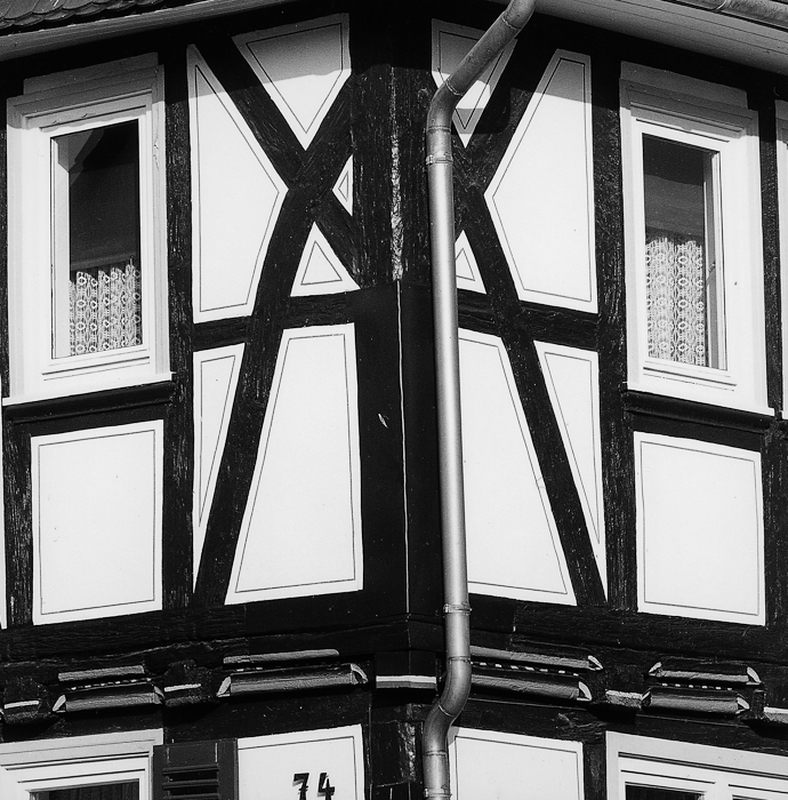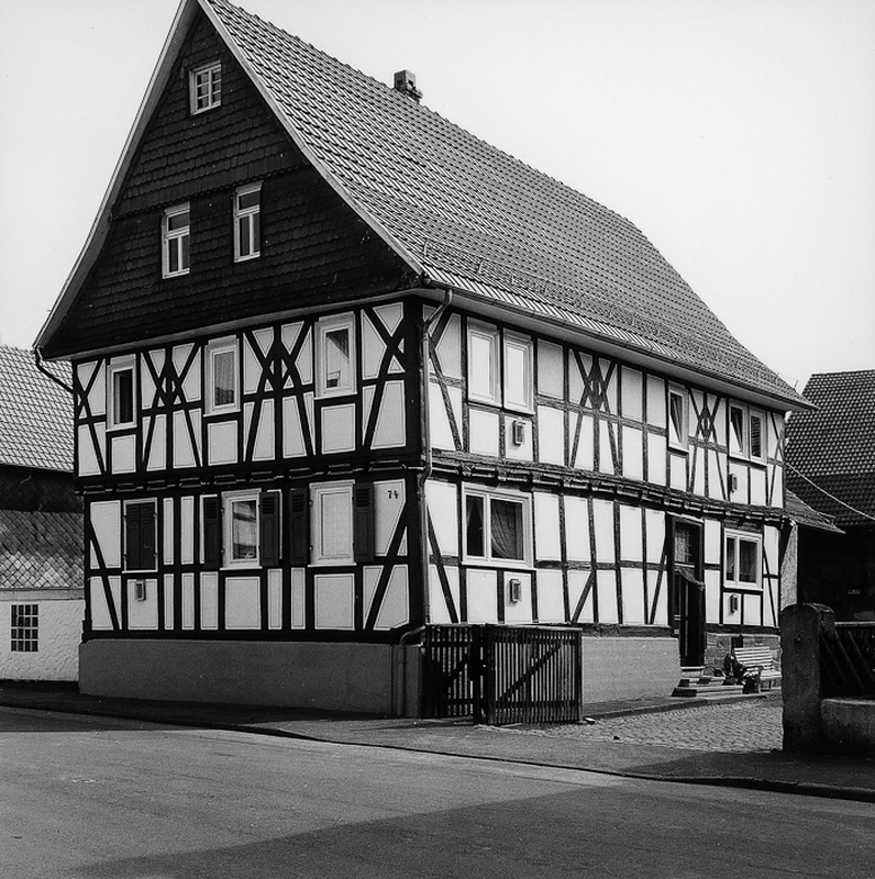 Zweigeschossiges giebelständiges Wohnhaus mit überblatteten Mannfiguren an Eck- und Bundständern des Obergeschosses. Zwischen den profilierten Balkenköpfen Füllhölzer und Schwellenunterkante mit Schiffskehlen und Rundstab. Die Fachwerkkonfiguration und die Schmuckformen lassen eine Datierung in die erste Hälfte des 17. Jhs. zu.