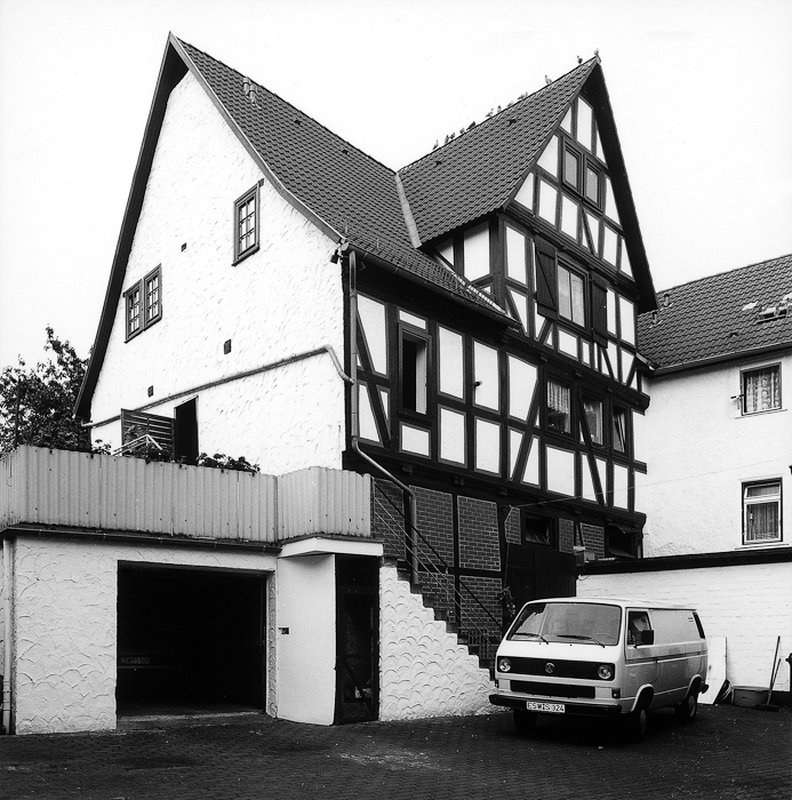 Großvolumiger traufständiger verputzter Fachwerkbau in Sichtweite des Marktplatzes. Aus zwei älteren traufständigen Rähmbauten des 17. und 18. Jahrhunderts zu Beginn des 19. Jahrhunderts durch Aufsetzen eines dritten Geschosses und des flachgeneigten Satteldachs zusammengefasst und als Putzbau gestaltet. Betonung der Mittelachse durch breiten Zwerchgiebel. Die Putzfassade im Zuge der Sanierung 2010 wiederhergestellt.
