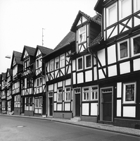 Schmal bemessenes Fachwerkwohnhaus mit einem ortstypischen Gerüstraster aus dem Ende des 17. Jhs. im Obergeschoss: dort an den Eckständern starke 3/4-Streben mit einem zusätzlich eingestellten Kopfband. Am Bundständer im Brüstungsbereich einfache Fußstrebe. Der Bereich des kräftig artikulierten Geschossüberstandes steigt markant nach rechts auf.