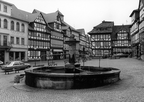 Kreisrunder Marktbrunnen aus Sandsteinmauerwerk in einem Durchmesser von ca. 7 m. In der Mitte erhebt sich ein Pfeiler mit abschließendem Abakus, der von einer Kugel bekrönt wird. Der Brunnen, der bis zum Jahre 1573 als Solekump in der Saline Sooden diente, ist als stadtgeschichtlich wichtiges Denkmal schützenswert.