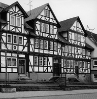 Zweigeschossiges Fachwerkgebäude über hohem Sandsteinsockel in konstruktivem Gerüstraster, bestehend aus gerade geschnittenen 3/4-Streben an den Eckständern, im Zwerchhaus Mannfiguren mit Hals- und Brustriegeln. Da das Haus einen wichtigen Teil der Zeilenbebauung darstellt, ist es aus städtebaulichen Aspekten als Kulturdenkmal anzusprechen.