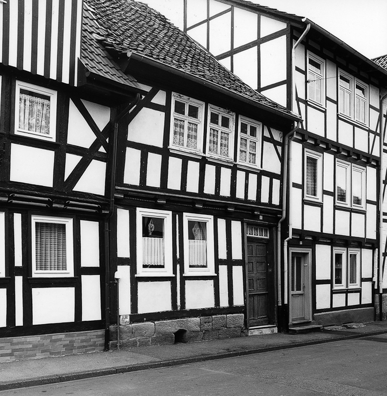 Traufständiges Wohnhaus mit thüringischen Fachwerkmotiven: im Obergeschoss Leiterbrüstung mit gezapftem, durchgehenden Brustriegel; Eckständer durch kurze Kopfstreben oberhalb des Riegels versteift. Erhalten hat sich eine kassettierte Haustür mit Oberlicht aus der Mitte des 19. Jhs. Auf Grund seiner markanten Erscheinungsform ist das Gebäude aus architekturgeschichtlichen und städtebaulichen Aspekten schützenswert.