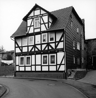 Direkt an der Stadtmauer befindliches Wohnhaus aus der zweiten Hälfte des 18. Jhs. in klar gegliederter Fachwerkkonfiguration aus leicht gebogenen 3/4-Streben an den Eckständern und konvergierende Fußstreben an den Bundständern. Besonders auffallend ist die Stärke der verwendeten Hölzer. Zwerchhaus in jüngerem, konstruktivem Fachwerkraster.