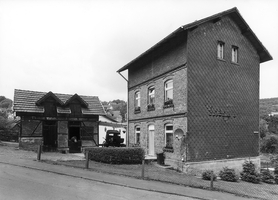 Am Anfang des Weges ragt ein zweigeschossiges Backsteinwohnhaus über hoher Sockelzone und abschließendem Kniestock als kubischer Baukörper heraus. Die hohen Segmentbogenfenster sind mit einem deutlichen Überfangbogen versehen. Hinter dem Haus befindet sich ein Stall aus der Bauzeit, die um 1900 anzusiedeln ist. Auf Grund seiner Lage und dem ungestörten Erscheinungsbild ist das Haus aus städtebaulichen Aspekten Kulturdenkmal.